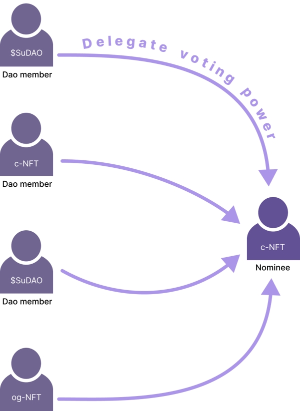 Voting Interface: Using Snapshot (and in future, on-chain UI), SuDAO holders and NFT holders will use their wallet to sign votes. Each proposal typically provides choices (For, Against, maybe Abstain) and you simply select and confirm. Snapshot automatically reads your token balance and NFT to apply your vote weight. The results are transparent – one can see how much support each side (tokens vs NFTs) gave.